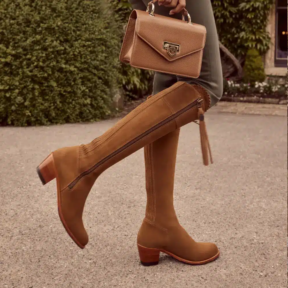 Among Fairfax & Favor’s most popular offerings are the Regina boots, beloved for their versatility and undeniable charm. These knee-high boots feature a sleek silhouette adorned with signature tassel detailing, adding a touch of flair to any ensemble. Available in a range of luxurious leathers and timeless colours, the Regina boots effortlessly transition from day to night, making them a wardrobe essential for every season.