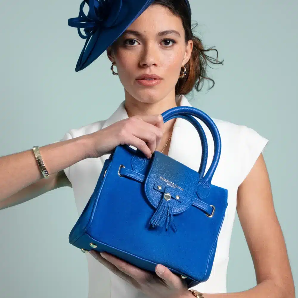 Now available in the vibrant Porto Blue Collection from Fairfax and Favor, the Mini Windsor adds a pop of colour and holiday vibes to your ensemble. Embrace the essence of summer with this must-have accessory.