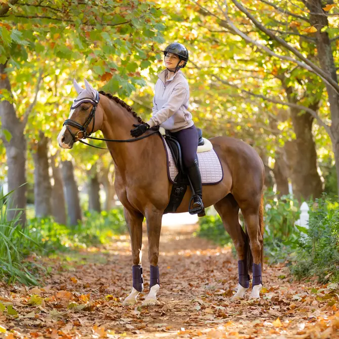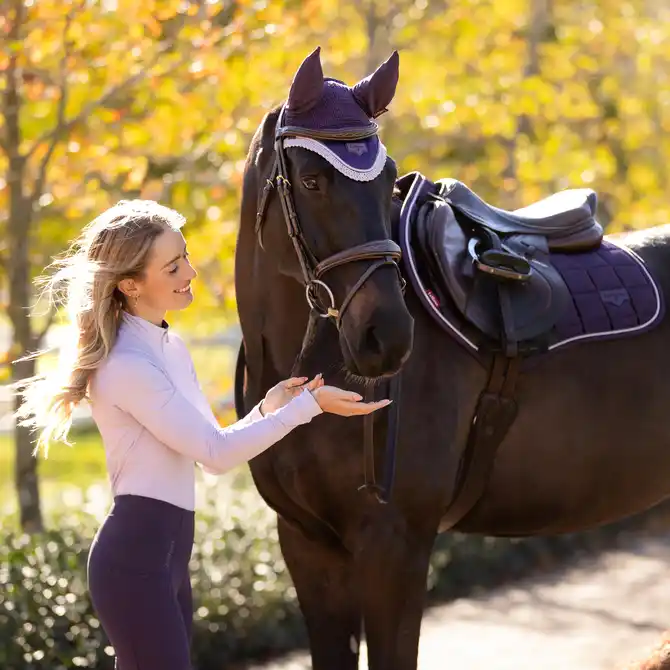 Bay horses have rich, warm coats that look fantastic with a wide range of colours – both bold and subtle. For the AW25 LeMieux palette, here’s how each shade works on a bay: