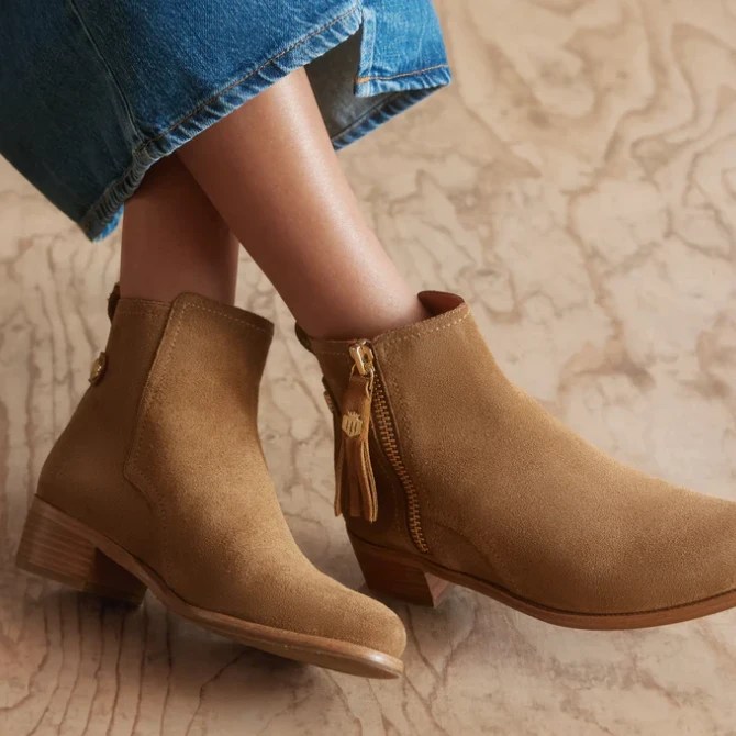 Fairfax & Favor Ladies Flat Oakham Ankle Boot Tan Suede