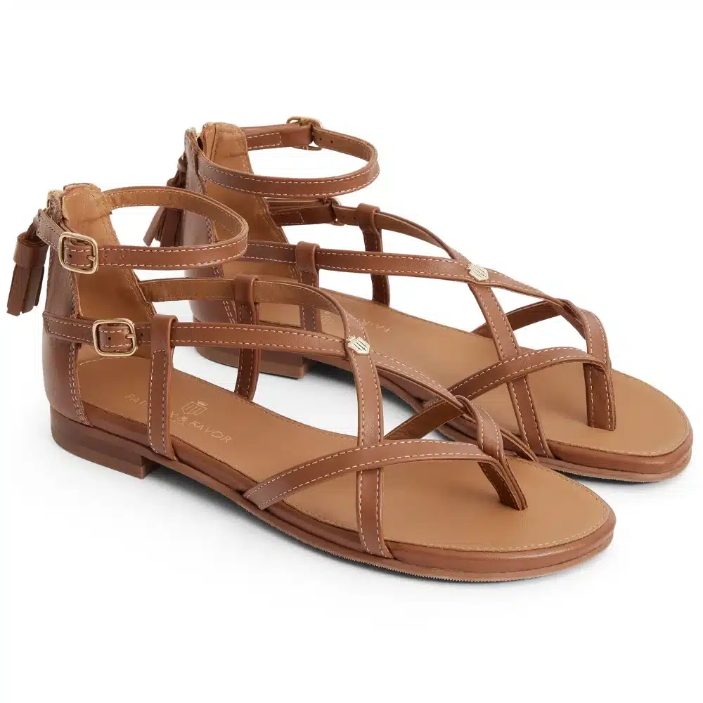 The Brancaster is the classic criss-cross sandal that will walk you straight into summer. This eye-catching sandal will quickly become your go-to summer staple. Staying true to its Fairfax & Favor heritage, the Brancaster features delicate tassel detailing to the rear zip. Partner with a pair of crops on the beach, or a floaty evening number for a classic summery aesthetic. Please note: This product runs big so if you’re in between sizes we suggest purchasing a smaller size.Please be aware that due to the handmade nature of this product, there may be variation in the direction of the stripes and items may differ slightly from the images shown.