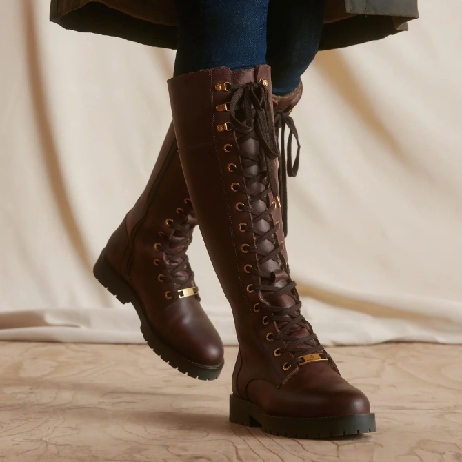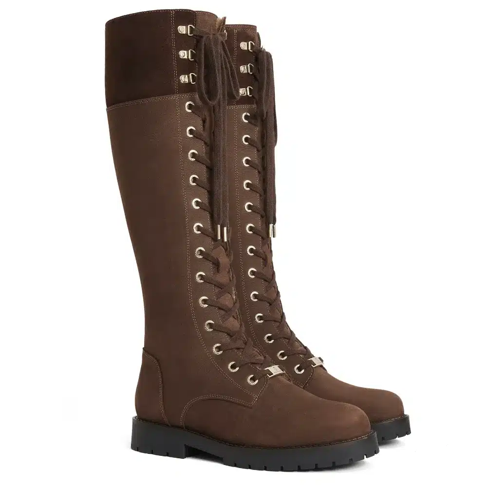 Fairfax & Favor Ladies Anglesey Knee High Combat Boots Chocolate Nubuck