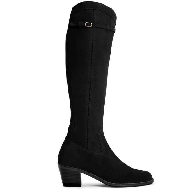 Clean, minimal and refined, the Kimberley Heeled Tall Boot draws inspiration from the silhouette of our iconic Regina and offers the same exceptional fit. The slender strap at the top, complete with delicate buckle trim, keeps detail to a minimum, delivering a boot that’s understated and utterly timeless.