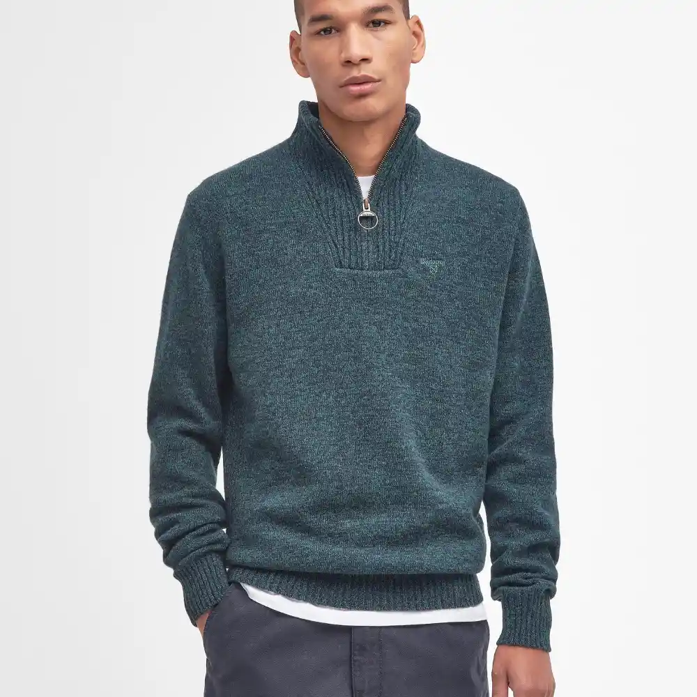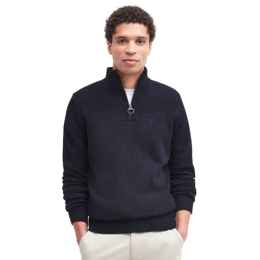 The Barbour Mens Essential Lambswool Half Zip Jumper in Navy Mix is a sophisticated and versatile addition to any wardrobe, perfect for those cooler days when you need a blend of comfort and style. Crafted from 100% lambswool, this sweater offers exceptional softness and warmth, ensuring you stay cosy throughout the colder months.