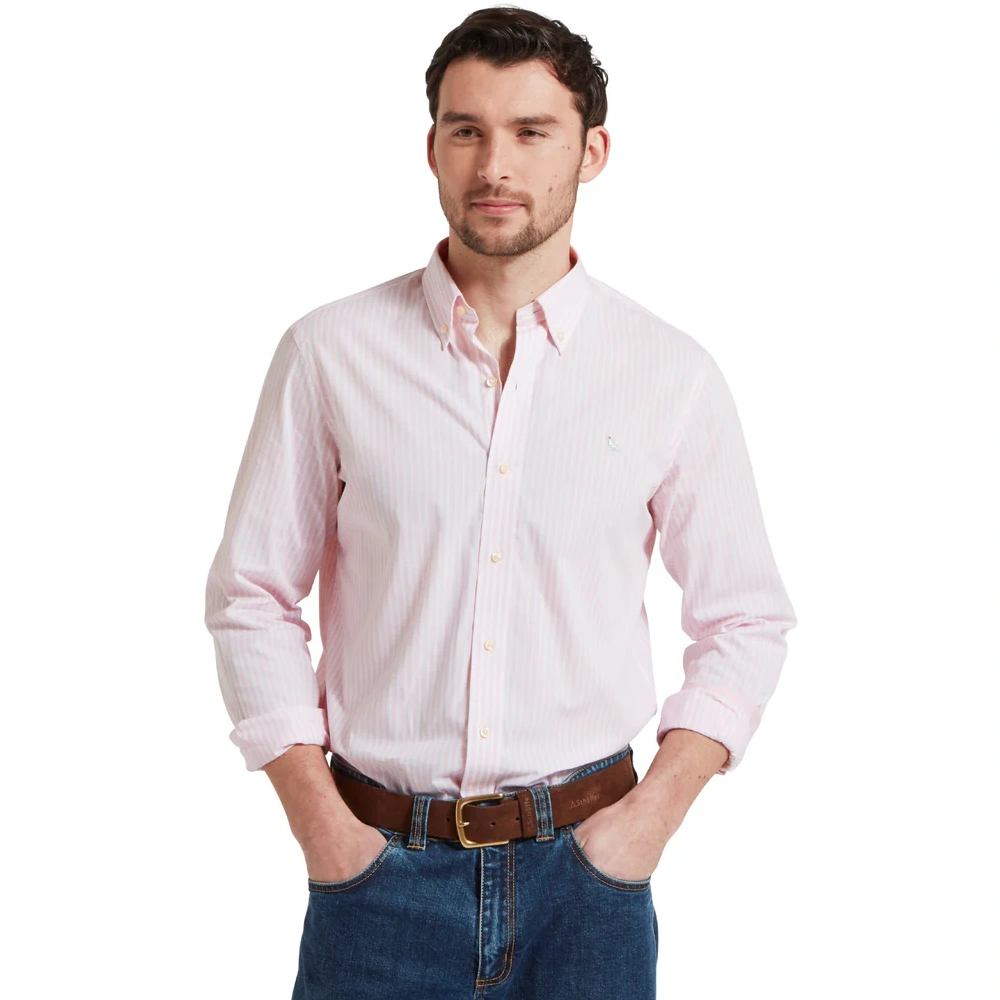Lightweight and soft on the skin, this versatile striped shirt offers day-long comfort in a well-fitting shape that layers perfectly with sweatshirts and gilets. With an array of subtle details that add to its charm – think embroidery to the chest, and contrast inside cuffs and collar – the tailored fit ensures a sharp silhouette for smart and relaxed occasions.