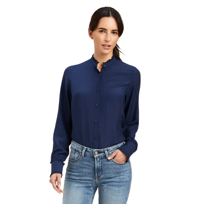 Constructed of a light, silky twill with a feminine mock neckline, the Ariat Clarion is the epitome of countryside elegance.