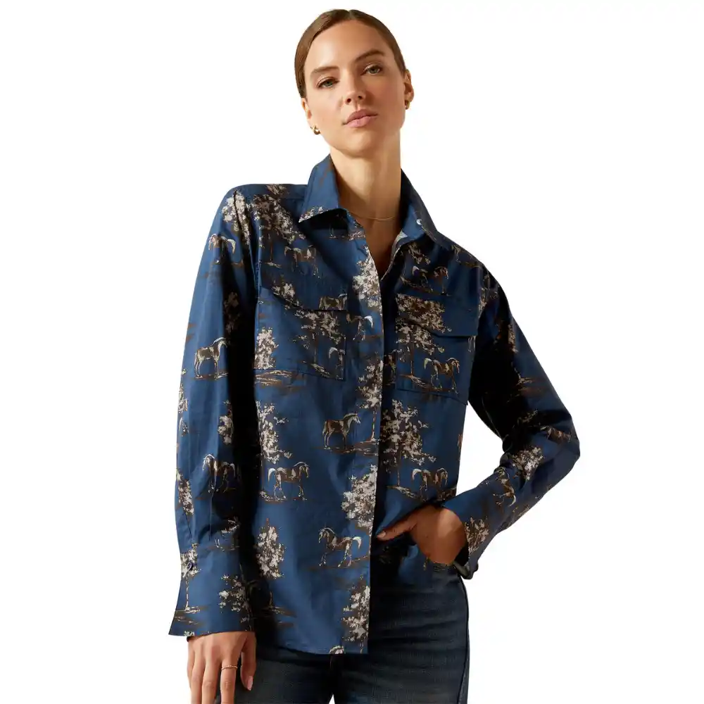 Shop for the Ariat Ladies Wolseley Shirt in Blue Stripe at Wadswick Country Store: