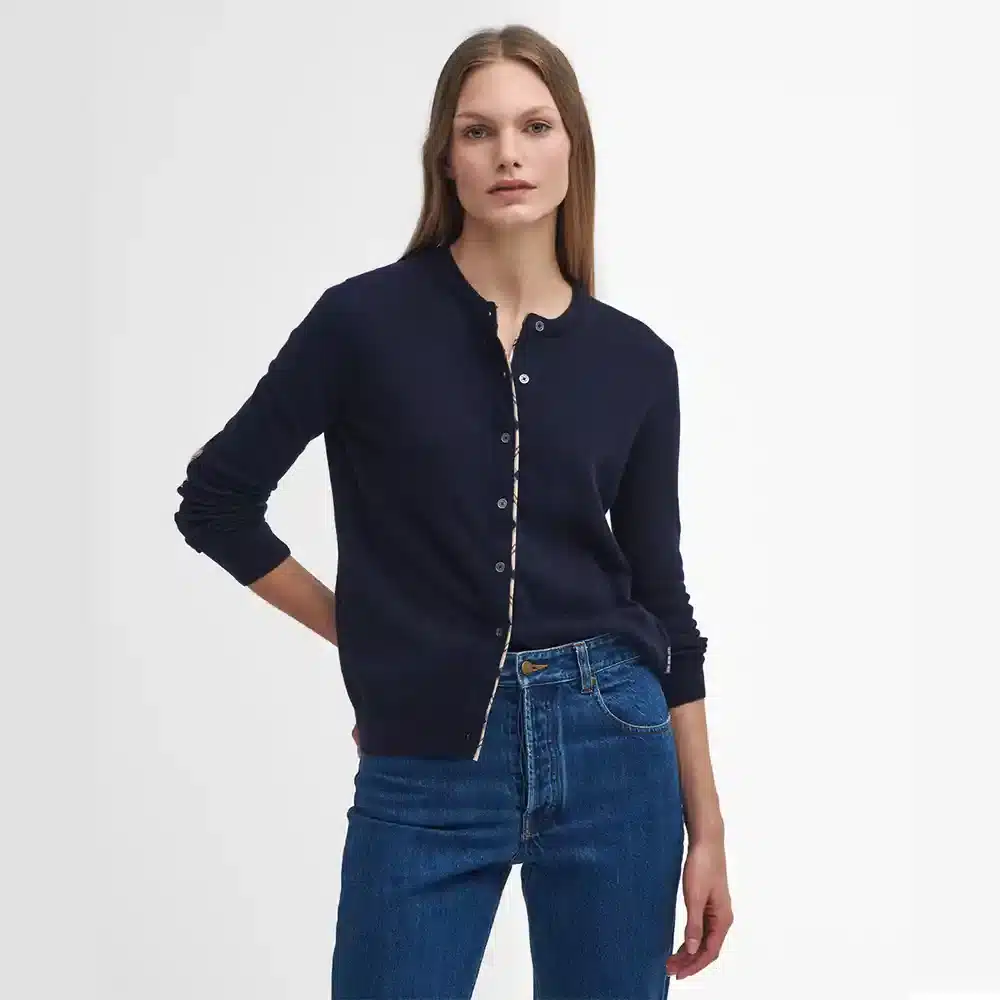 The Barbour Ladies Pendle Knitted Cardigan Navy Hessian Tartan is a smart and stylish choice for those looking to add a touch of classic elegance to their spring wardrobe.