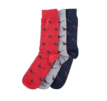 Presented in a gift box, this set of three pairs of cotton-rich Barbour Men’s Pheasant Socks is detailed with a woven pheasant motif throughout.