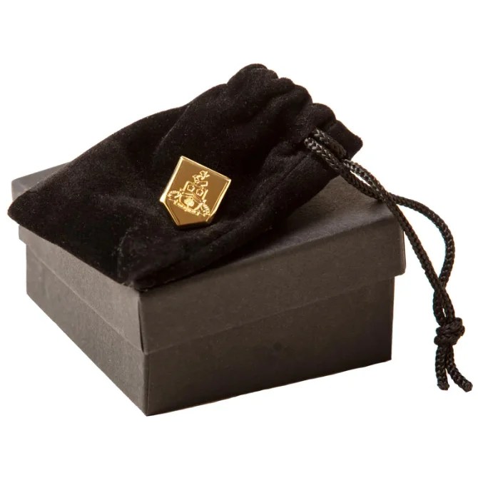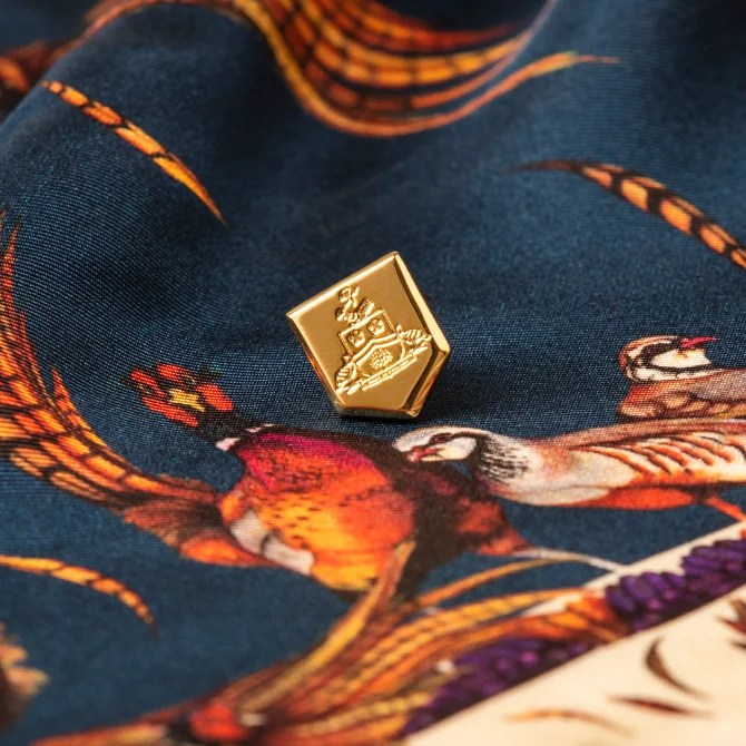 Designed with precision and care. The Clare Haggas Bespoke Gold Pins are guaranteed to add a touch of elegance to any outfit. These beautiful tie pins come presented in their own velvet bag and bespoke boxes, making it an ideal gift for a loved one. The perfect addition alongside your next purchase of any Clare Haggas design. Whether it’s to hold a wayward scarf at bay, without being too much of a distraction, to hold your cravat, or stock in place, or even to pin your tails on to your scrunchies.