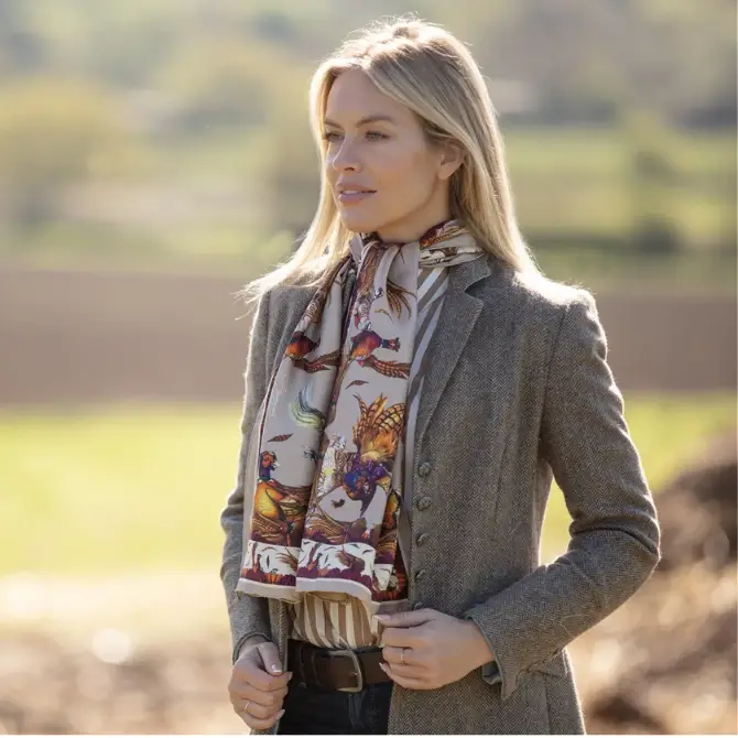 The beloved Clare Haggas George And Friends Classic Silk Scarf in Toffee returns for Autumn/Winter 2025. Reimagined in rich, seasonal tones that propel this countryside classic into a bold statement piece for the cooler months. With an alluring Toffee colourway, this release brings a new depth of colour and character to one of Clare Haggas’ most cherished creations.