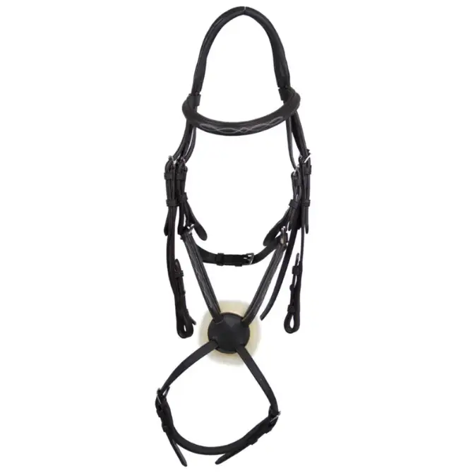 This bridle features a padded headpiece, noseband, and browband designed to mould comfortably to the horse’s face, and relieve tension on the sensitive nerves around the ear and jaw. The headpiece features a subtle cut behind the ears to enhance comfort, and its sleek width keeps the bridle from slipping forward toward the base of the ear. The noseband features a padded closure that offers extra comfort under the chin compared to other grackle style bridles.
