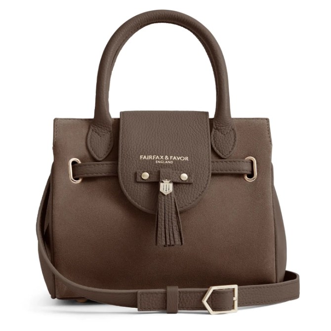 Fairfax & Favor Mini Windsor Handbag Fog Suede