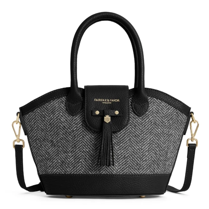 The much-loved icon has been given a stylish winter look. The Mini Windsor Herringbone Tote bag delivers all the same design details, including a detachable shoulder strap so you have a choice of wearing it over your arm, your shoulder or across your body – this time in our pure wool herringbone fabric with a refined leather trim