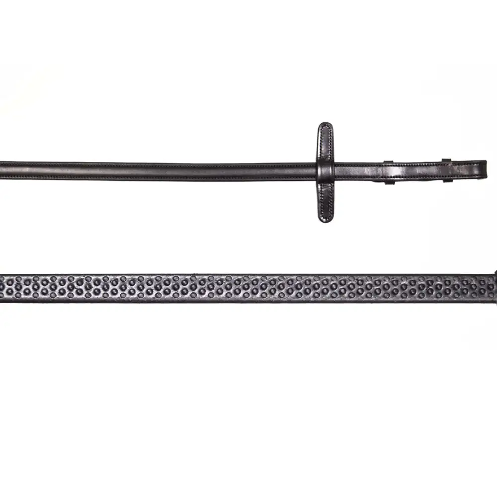 The Henry James Biothane Bio Grip Rubber Reins in Black feature Biothane rubber pimples. A very thin and flexible rein more suited for dressage and flatwork.