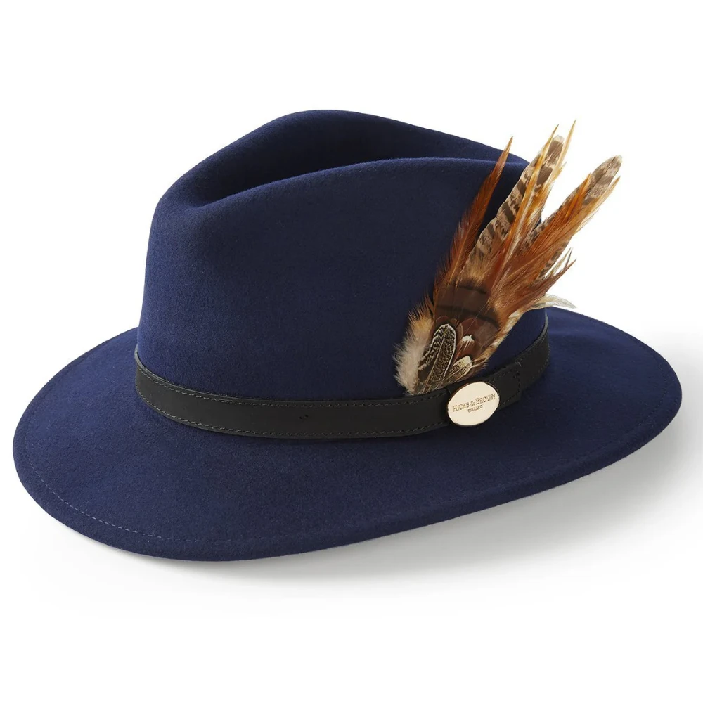 Hicks & Brown Suffolk Fedora Hat Navy (Bronze Feather Wrap)
