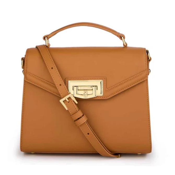 Handcrafted from the finest leather with a compact top handle design, this bag has been beautifully crafted with a vintage, yet contemporary aesthetic. With a detachable cross-body strap with a large internal compartment, the internal zip pocket makes for the safe keeping of your valuables. Synonymous with Holland Cooper, each bag has been elevated with signature gold hardware and a delicate gold clasp.