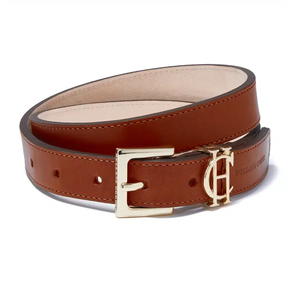 Introducing the Holland Cooper Ladies HC Slim Logo Belt in Tan, a meticulously handcrafted accessory that epitomises luxury and elegance. Crafted with precision in the UK, this belt is designed to enhance your style quotient with its sleek and sophisticated design.