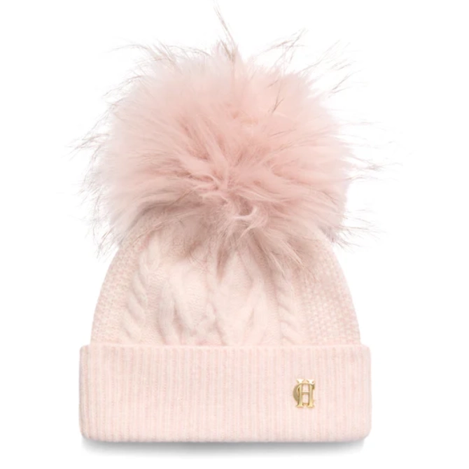 Introducing the Sloane Cable Bobble Hat, crafted in a thick, chunky wool-blend yarn for ultimate warmth and texture. Designed in a larger, oversized fit, it features a turn-back cuff and a playful, large pom-pom for a cosy yet stylish winter accessory. Perfect for layering over your cold-weather essentials, this hat combines comfort with signature HC charm.