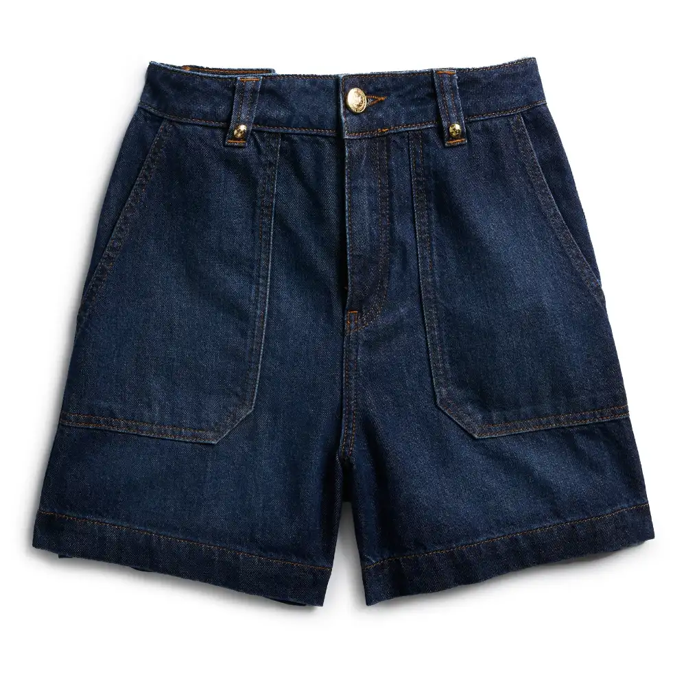 Effortlessly blending utility and elegance, our latest denim short fit features a high-waisted, A-line silhouette designed for a looser, more relaxed feel. Crafted from lightweight fabrics, these shorts are ideal for warmer days, offering exceptional comfort and style. Thoughtfully detailed with side-entry patch front pockets, they add a practical yet chic touch to any outfit. Available in two timeless washes and finished with our signature gold hardware, these shorts are your ultimate summer staple.