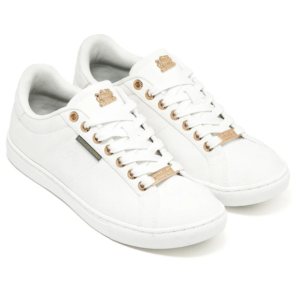 Crafted with a premium cotton canvas, these trainers have been designed to become an everyday piece in your wardrobe. Featuring quarter panel embroidery for a touch of sophistication, the classic gold hardware adds a luxurious element, elevating these trainers from casual to chic. With a fully branded outsole, every step you take makes a statement of quality and authenticity