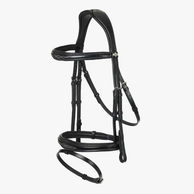 The LeMieux Competition Bridle is show quality with an elegant shaped, padded browband and noseband with decorative stitching.