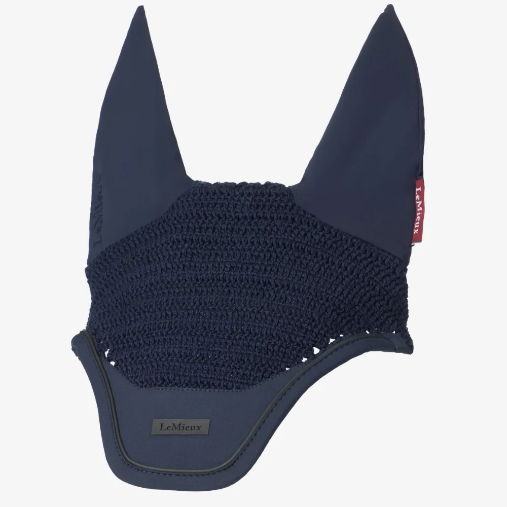 Decrease sharp sounds and improve your horse’s relaxation and concentration with this peak-performance Acoustic Fly Hood. Hand crocheted in a specialist patterned knit, it has a sporty low-line cut and features a tie-down loop on the underside, ideal for competition wear. Coordinated soft shell patch trim and matte silicone LeMieux branding create a sophisticated look.