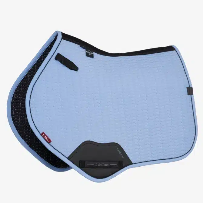 The sporty matte-textured faux leather girth protection area is complemented by an embossed logo. Our signature LeMieux hidden girth loop channels mean you can precisely place your girth.