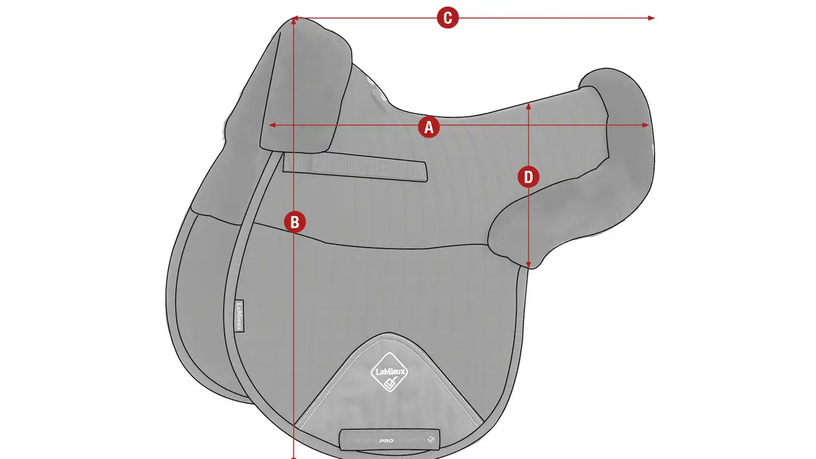 The updated sporty girth protection area shape and texture lend subtle luxury and practical durability to the pad.