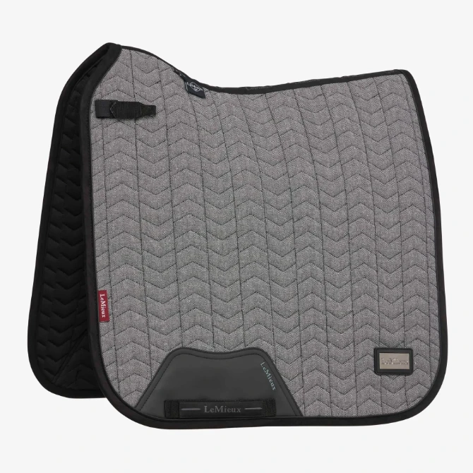 Up your game with this luxe saddle pad from the Aspen Collection. Crafted in a premium luxury houndstooth check fabric, it has a unique houndstooth quilting pattern that’s sure to stand out from the crowd. Patent PU piping catches the light, and a gunmetal LeMieux badge matches back to the rest of the Aspen Collection.