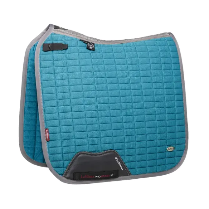 The LeMieux Self-Cooling Saddle Pads are made with the innovative FeelCool ® Ice material which has a cooling crystal kneaded into the weave. This is activated by moisture; the greater the moisture the greater the cooling effect! The crystals have incredible heat pick-up & transfer properties gradually absorbing and wicking sweat from the horse. Under extreme conditions, once dissipated a reverse rapid cooling effect is produced.