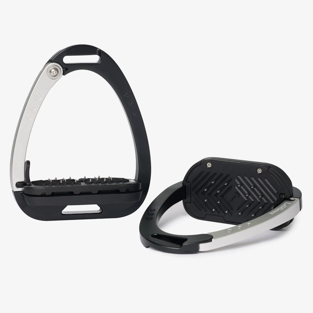 The footplate is supported by a twin-balance arch system that distributes the weight evenly across the base of the stirrup frame. The apex of the frame is recessed and off-set, encouraging a 45° outward orientation which makes it easier for the rider to locate the optimum angle for the foot and regain a lost stirrup.