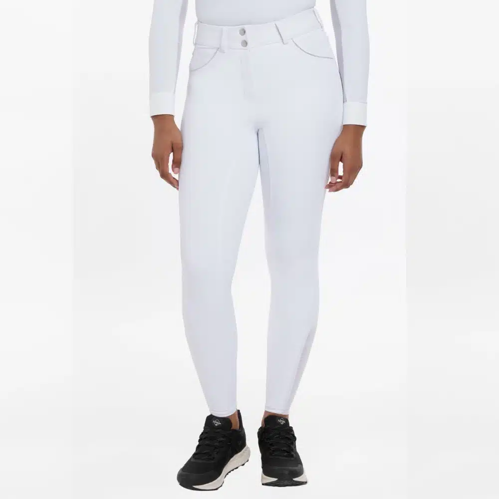 They are designed in a high-waisted breech style and feature a suede seat for security and stability in the saddle. The innovative close-contact cut boasts an entirely seam-free inside leg, perfect for delivering sensitive aids.