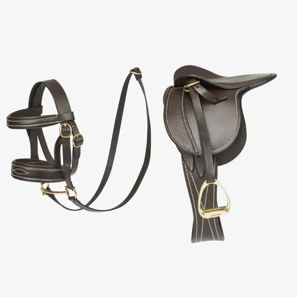 Practice tacking up with this ‘real design’ bridle complete with metal bit and reins.