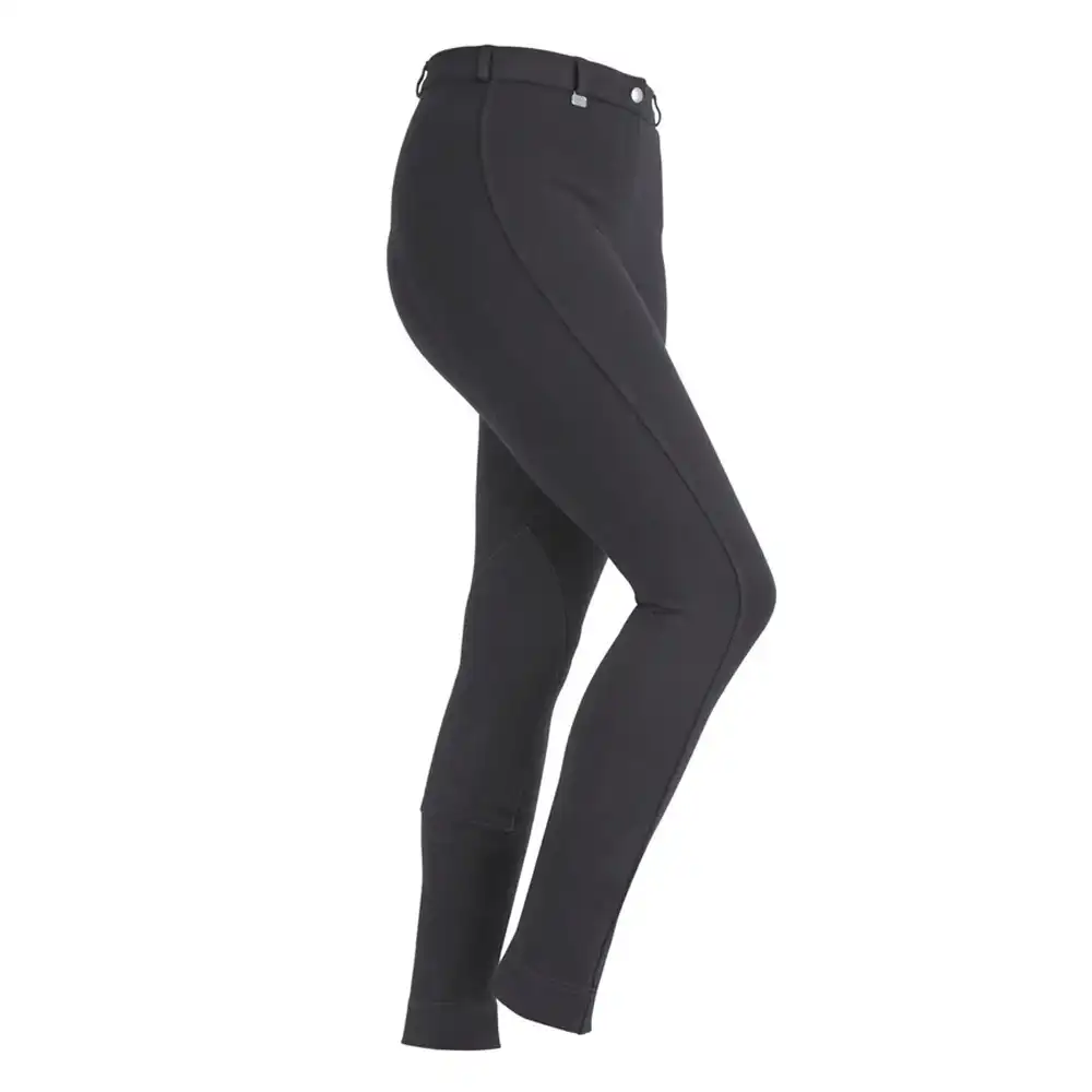 Great all round riding legwear, 4-way stretch knitted Creora® fabric gives these jodhpurs superior comfort and fit, with self-fabric contoured seat and knee patches, flat front, belt loops and inner hip pocket.