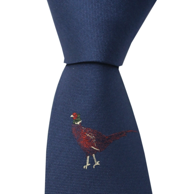 - Soprano Single Standing Pheasant On Navy Silk Tie