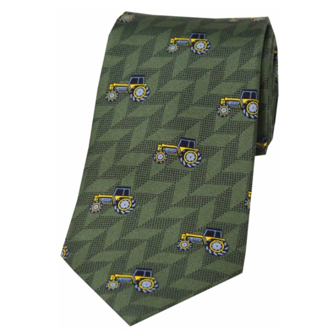 - Soprano Yellow Tractors On Country Green Silk Tie