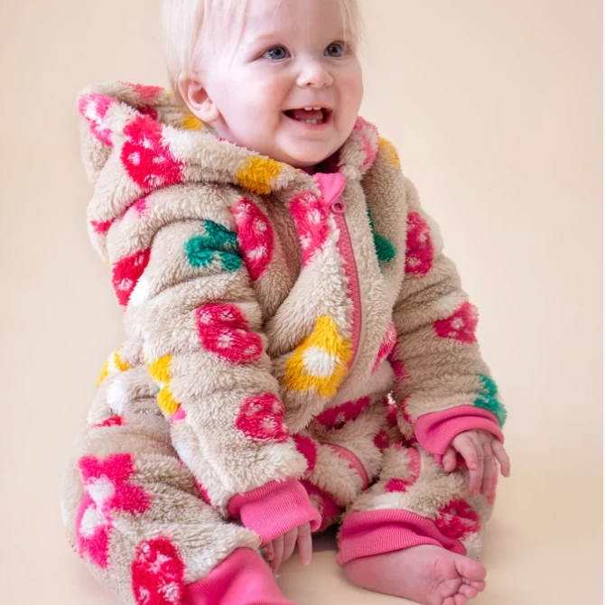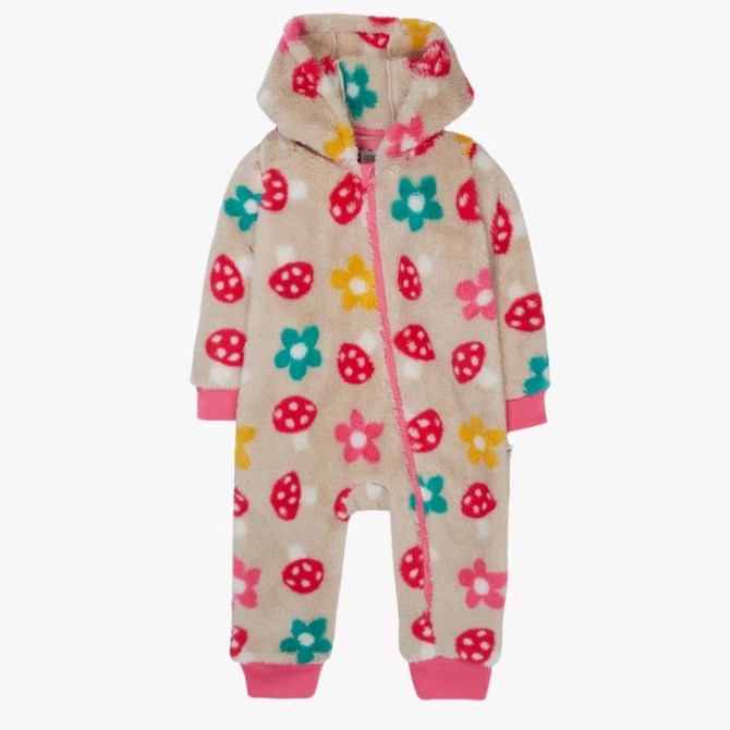 Frugi Childrens Cosy Ted Snuggle Suit Mushroom Field
