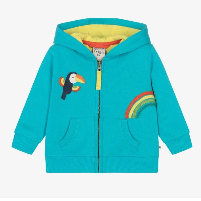 Frugi Childrens Carbis Hoodie Tropical Blue Toucan