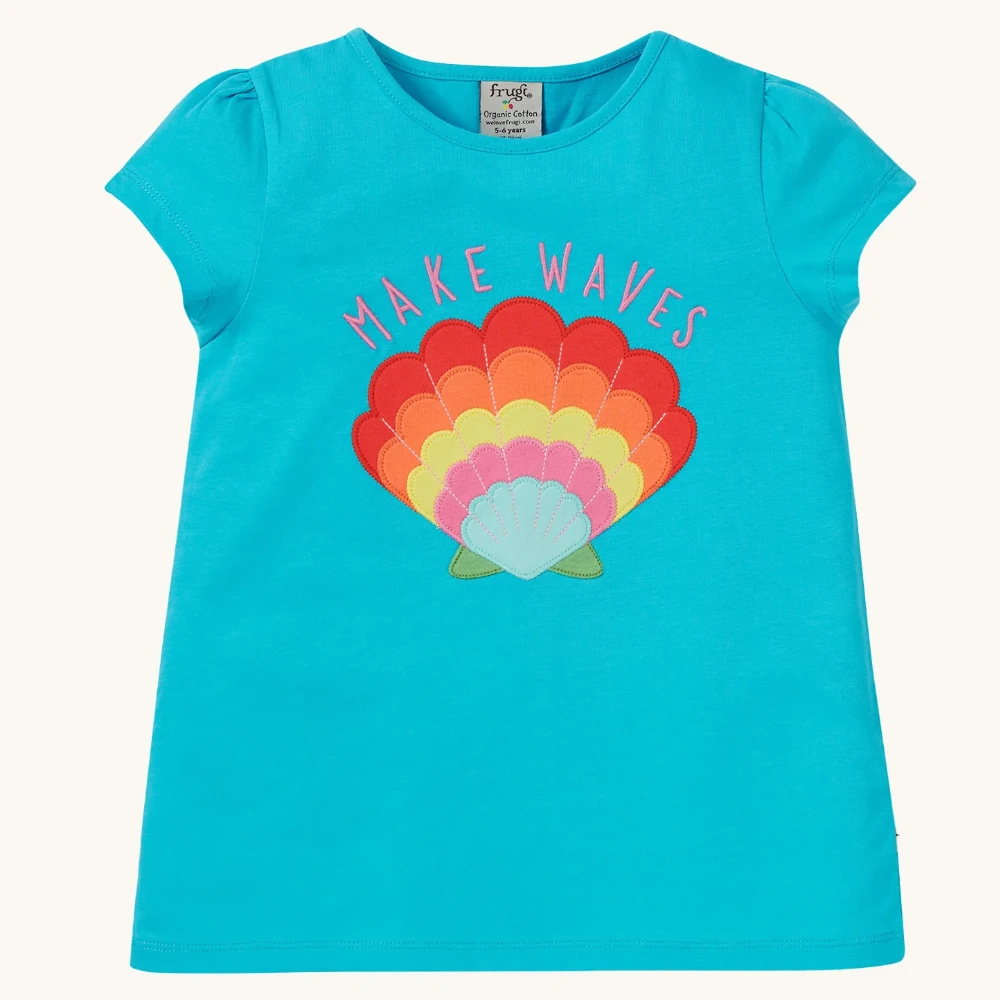Springtime fun, here we come! Our short-sleeved Emily Applique T-Shirt for kids’ features a fun Frugi character and is crafted from super-duper soft organic cotton. This GOTS certified, A-line top has elastic at the back of the neck to help make dressing easier in the mornings and pretty gathers on the sleeves. Pair with leggings, shorts or trousers!