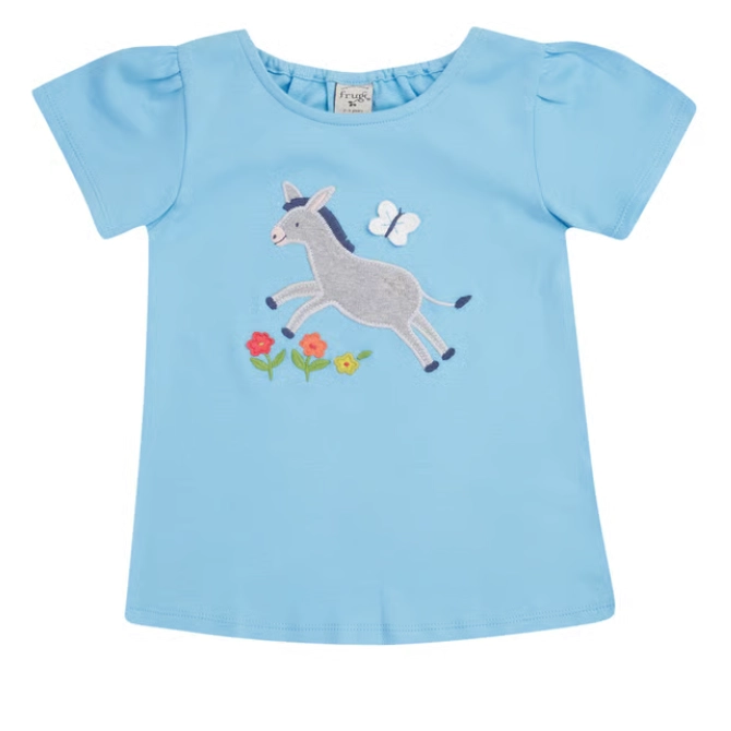 Frugi Childrens Emily Applique T-Shirt Donkey Bluebird
