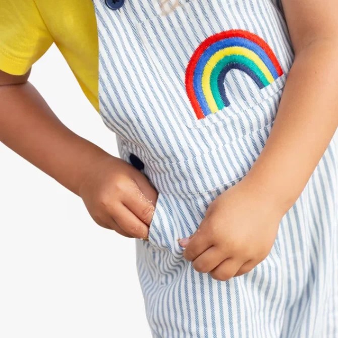 A classic dungaree design, these full-length Hugh Dungarees are ready for summertime fun. With three handy pockets for little treasures, and gorgeous embroidery on the patch pocket. They fit your little ones for longer with handy adjustable straps and are perfect for playtime or fun at the beach.