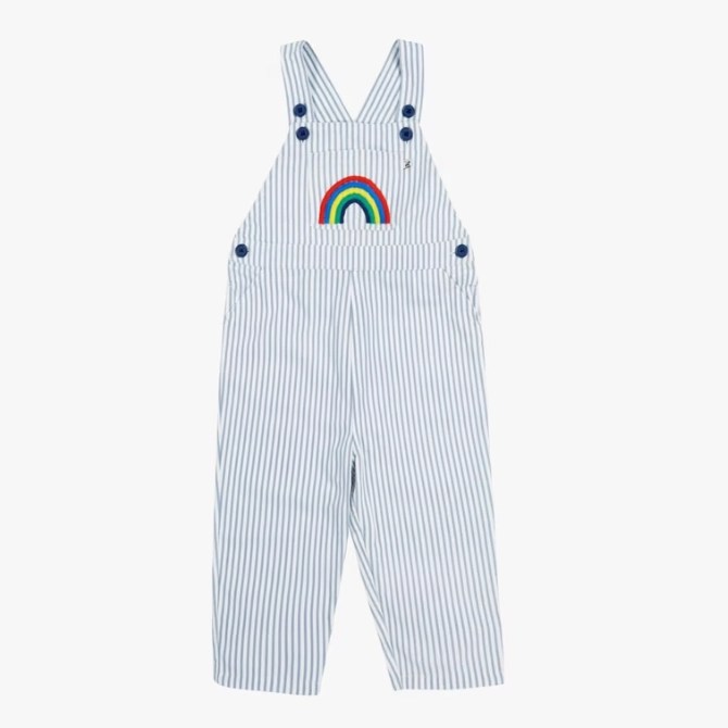 Frugi Childrens Hugh Dungaree Ticking Stripe/Rainbow