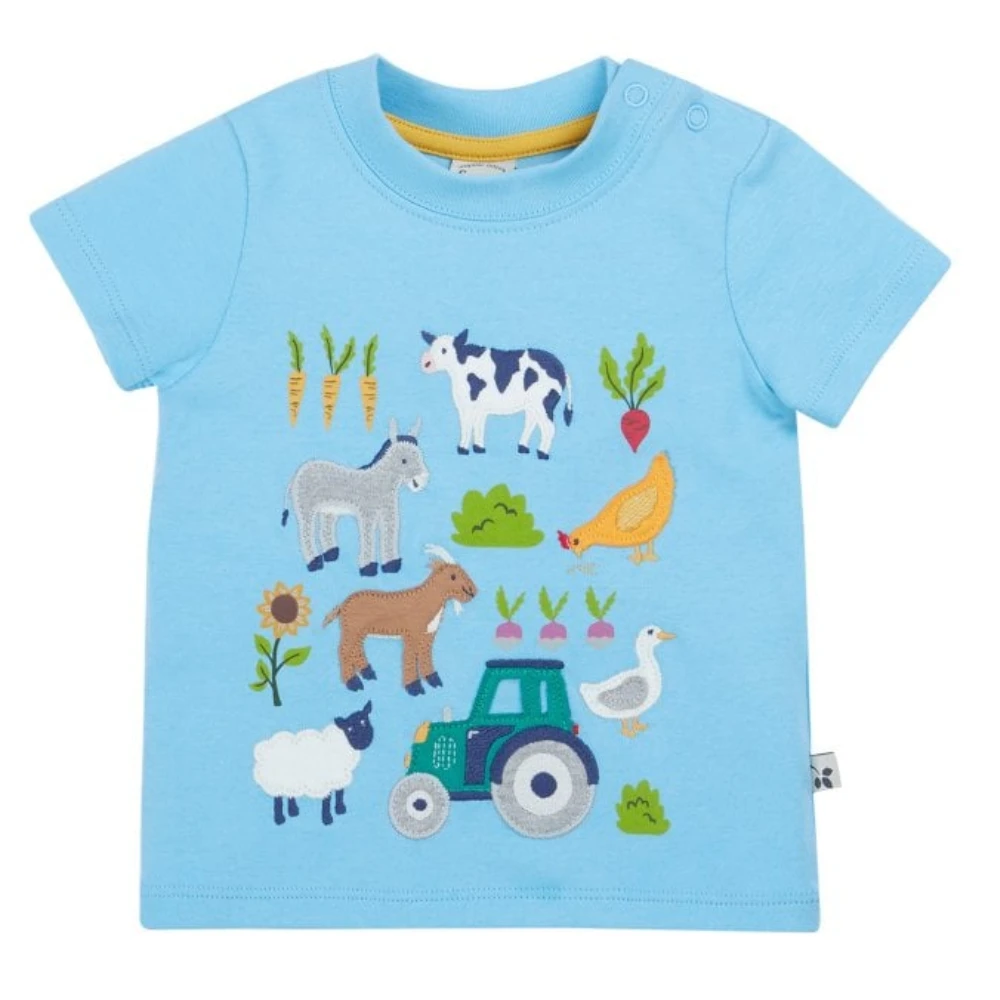 Frugi Childrens Little Creature Applique T-Shirt Farm Life