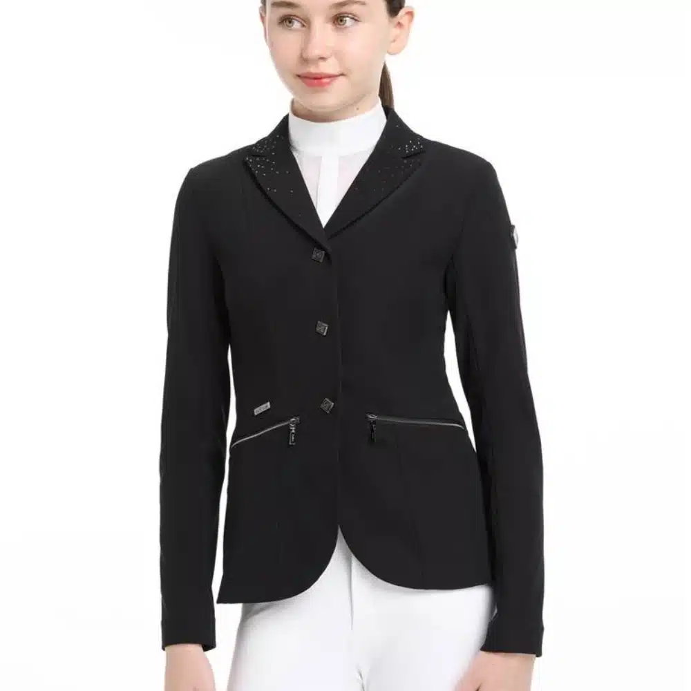 The signature LeMieux premium show jacket, scaled for young riders. Built for competition, it has perforated side vents lined with performance air mesh for comfort and breathability.