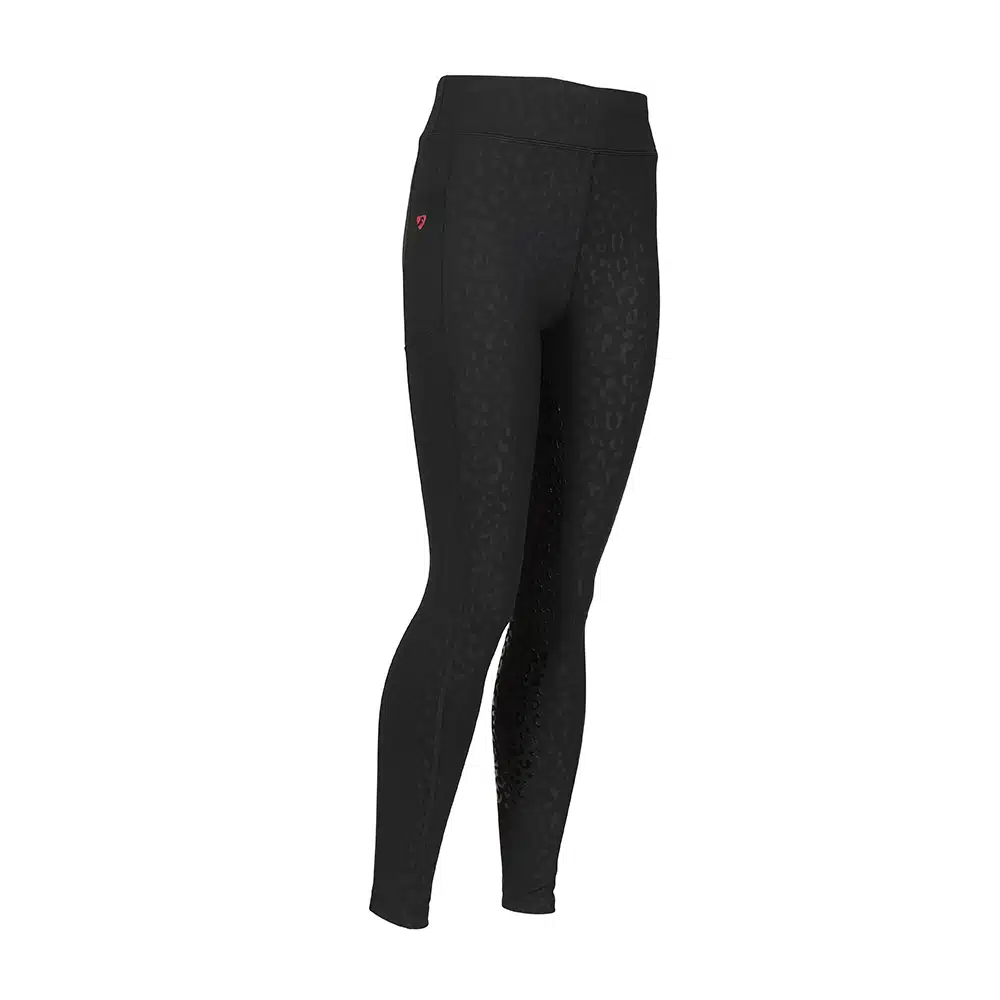 Supportive deep waistband, silicone leg grips for in the saddle security and a convenient thigh pocket for mobiles. Style detail: fluid second skin feel, deep waistband, moisture management stretch fabric, thigh phone pocket, comfort seams, Aubrion prints.