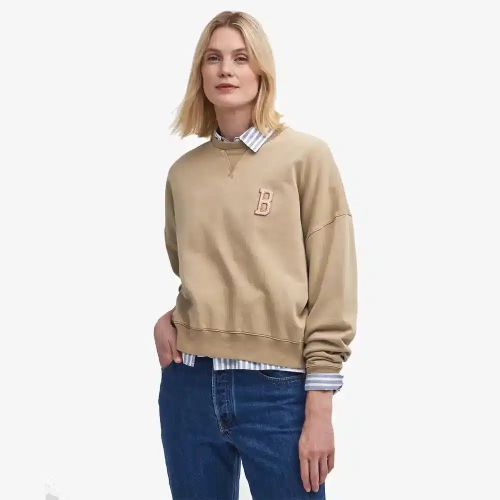 This sweatshirt features a bold graphic varsity-inspired take on the classic Barbour logo, adding a contemporary twist to a timeless design. The athleisure-inspired details give it a modern edge, making it a versatile piece that pairs effortlessly with jeans, leggings, or joggers for a relaxed yet stylish ensemble.