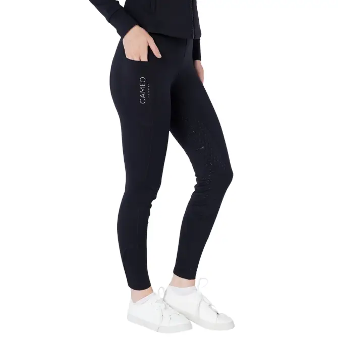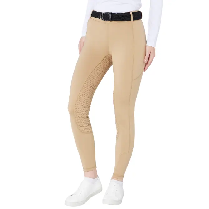 Cameo’s best selling thermo tights just got better! The Cameo Ladies Ecodry Riding Tights in Beige now have the Ecodry water repellent coating. This treatment is fluorine free and offers protection against rain showers whilst also being scuff resistant. These tights also offer a full silicone seat, a handy mobile pocket, and belt loops.