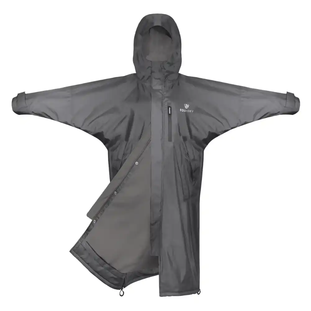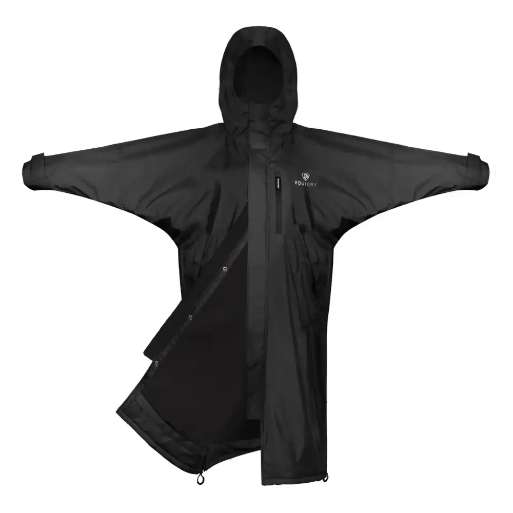 The EQUIDRY Evolution with thin fleece lining is designed to be worn oversized and full length so it covers the top of your boots but features an adjustable waist so you can choose an oversized style or cinch the coat in for a more tailored look.