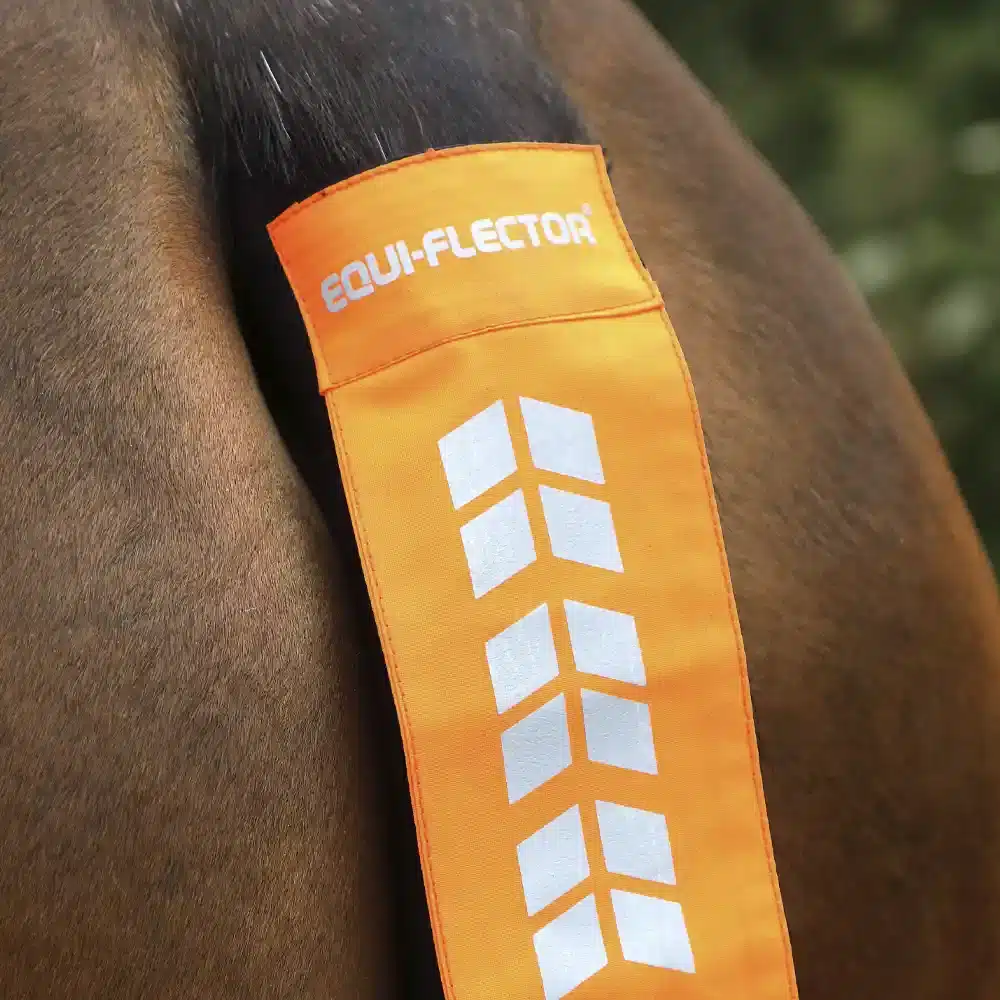 Crafted from bright, high-visibility orange fabric, the Equi-Flector® Tail Strap is further enhanced with reflective elements that catch and reflect light, ensuring your horse remains visible from all angles. This added layer of safety is crucial for road riding, as it helps alert approaching vehicles to your presence well in advance, giving them ample time to slow down and pass safely.